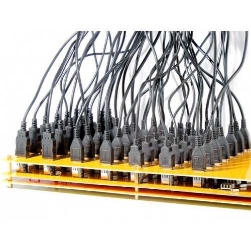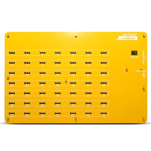 O HUB USB de 49 portas foi projetado para uso profissional, permite  a conexão simultânea de até 49 dispositivos USB (iPhones, Smartphones, câmeras digitais e outros ) para carga ou transmissão de dados.